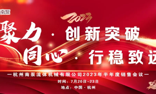 2023年7月20日-23日,中金環(huán)境南泵事業(yè)部旗下杭州南泵流體機(jī)械有限公司(以下簡(jiǎn)稱(chēng)杭州南泵)在杭州,舉辦為期4天的半年度銷(xiāo)售會(huì)議。此次會(huì)議主要圍繞“聚力”、“創(chuàng)新”、“突破”三個(gè)關(guān)鍵詞為主要思想。